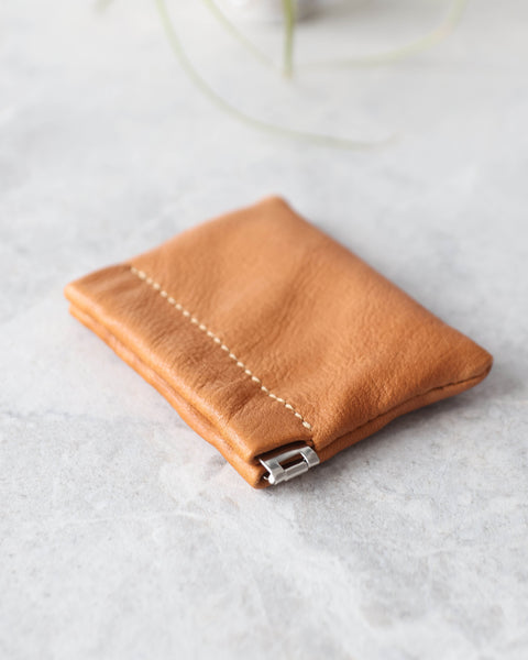 Timeless, handmade, and wonderfully functional. Crafted from carefully selected soft leather, this pouch has a vintage charm and opens effortlessly with a simple squeeze. Perfect for coins, trinkets, or tiny treasures.